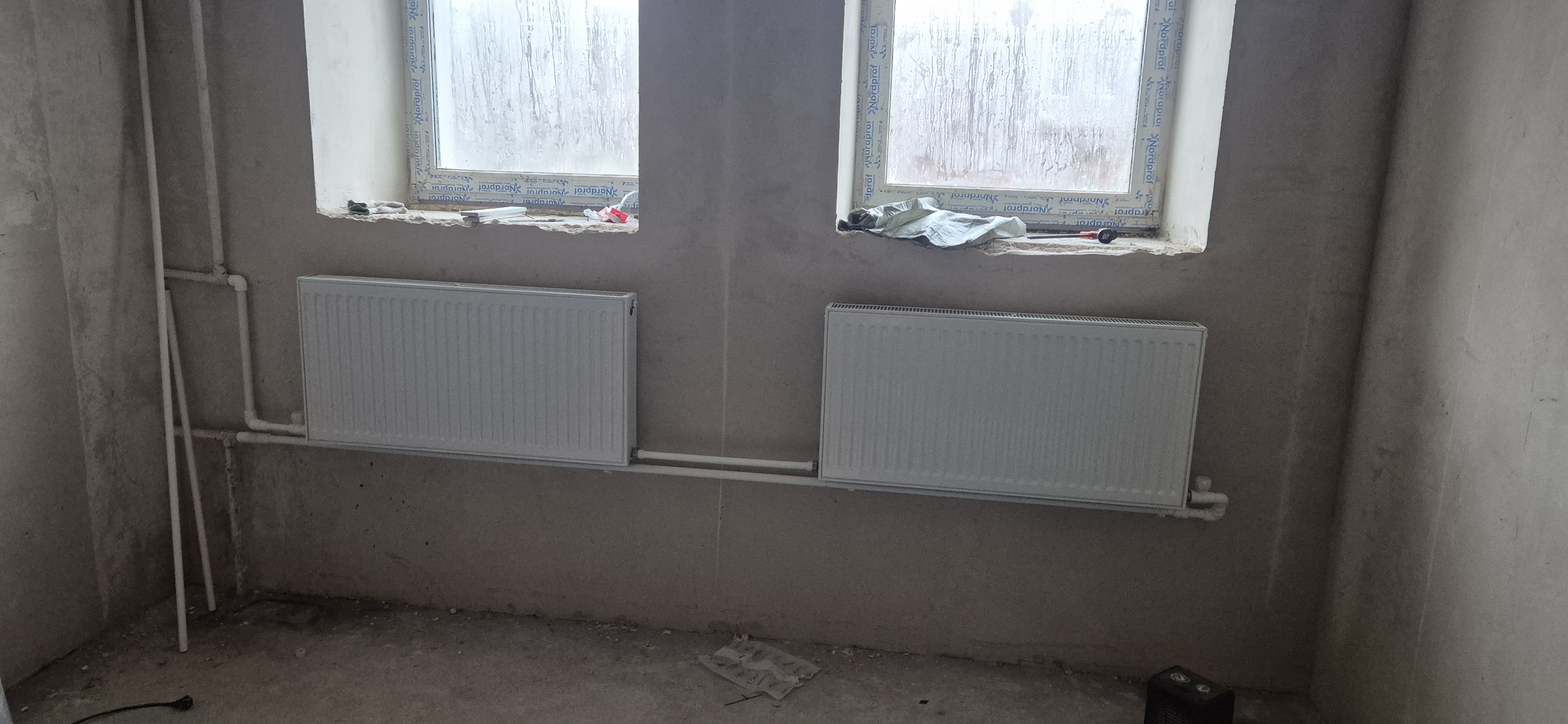 Здравствуйте, форумчане! Вопрос такой. Вот смонтировали мне систему отопления, а тепла нет:) Подскажите, что не так или так в данном монтаже? По началу, после запуска грела левая батарея, правая была еле теплая, потом правая перестала вовсе, а последние 3 дня обе холодные...