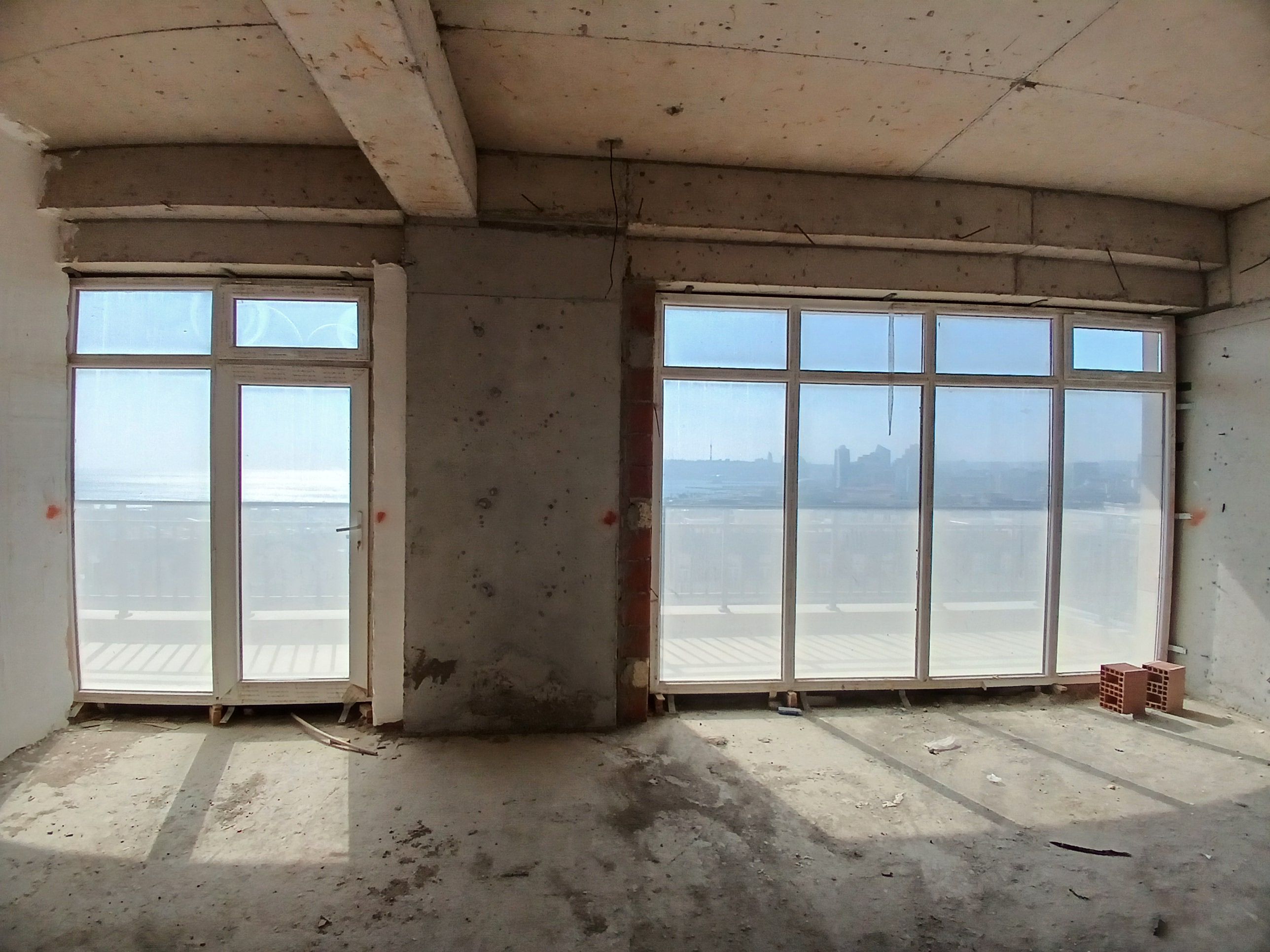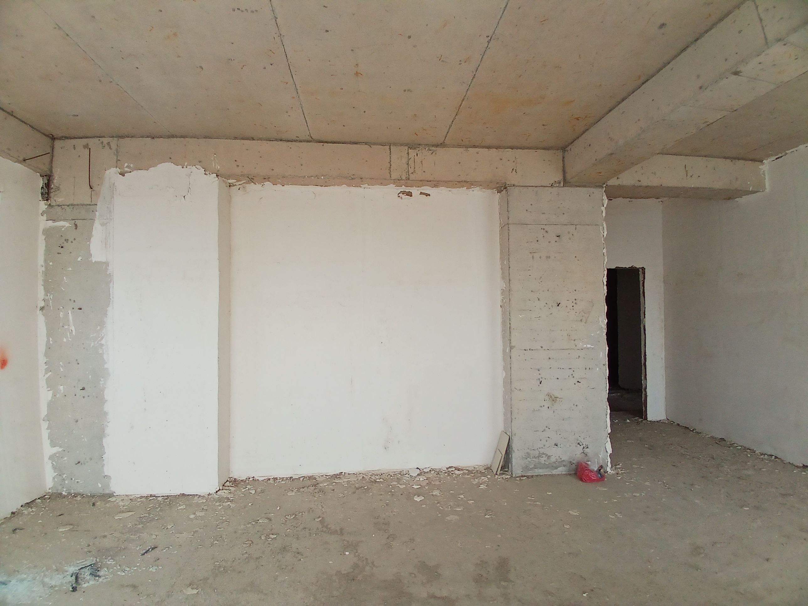 У меня комната размером 480см х 720см. Паралельно ширине комнаты, на расстоянии 200см от стены стоит балка межэтажного перекрытия. Высота балки 35см, ширина 40см. Высота потолка 330см (соответственно, высота от пола до балки 295см). На фото, фотография комнаты с двух сторон.