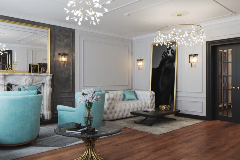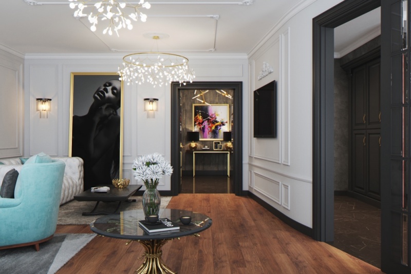 Стильный дизайн проект интерьера трехкомнатной квартиры в стиле Ар-деко. Разработанный и реализованный дизайн студией интерьеров Артпланнер.
