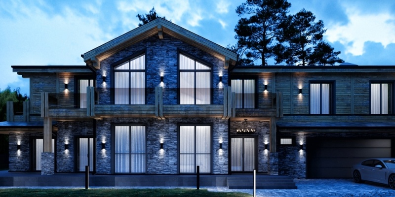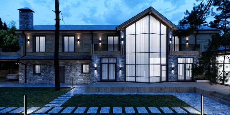 Стильный проект загородного дома в стиле шале. Проект включает разработку архитектуры, конструктива и инженерии дома и ландшафта. Комплекс выполнен в едином стиле. Разработанный и реализованный проектно-строительной компанией Артпланнер.