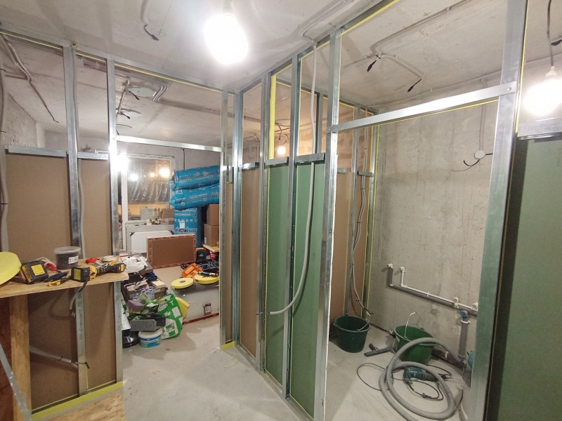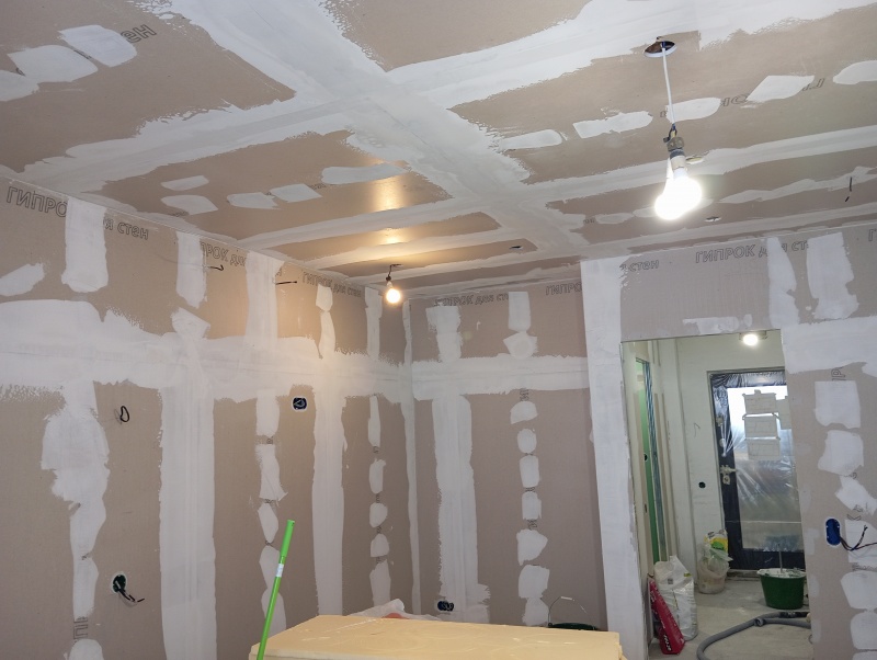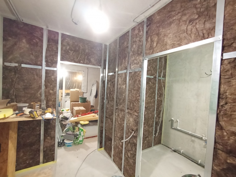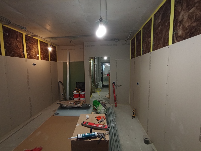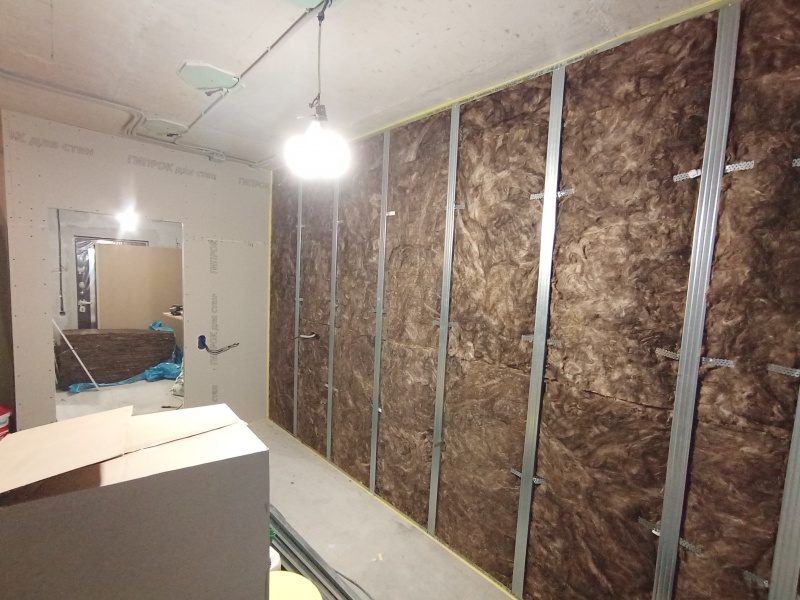 - Стены с шумоизоляцией и покраской