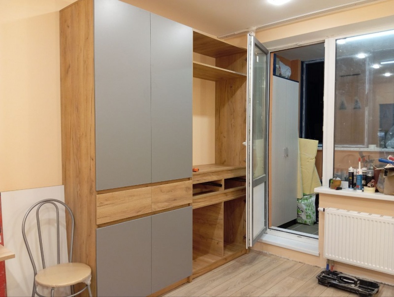 Основные требования: сделать детскую/рабочее место - вместо кухни, а кухню перенести в коридор. Максимум мест для хранения. Бюджетно, но продумано.