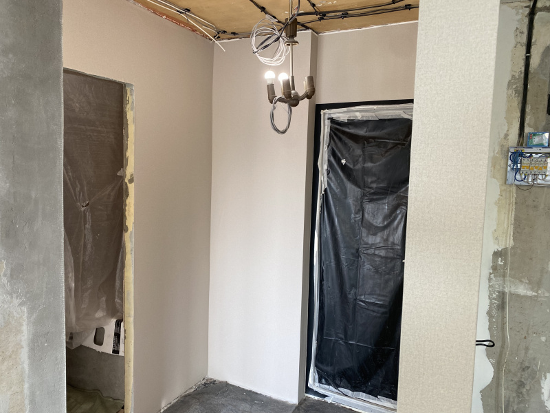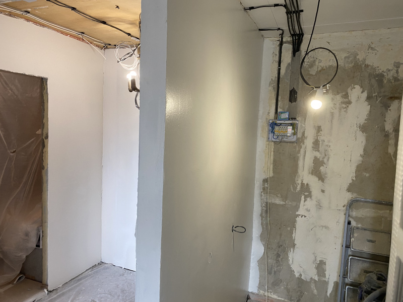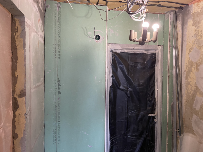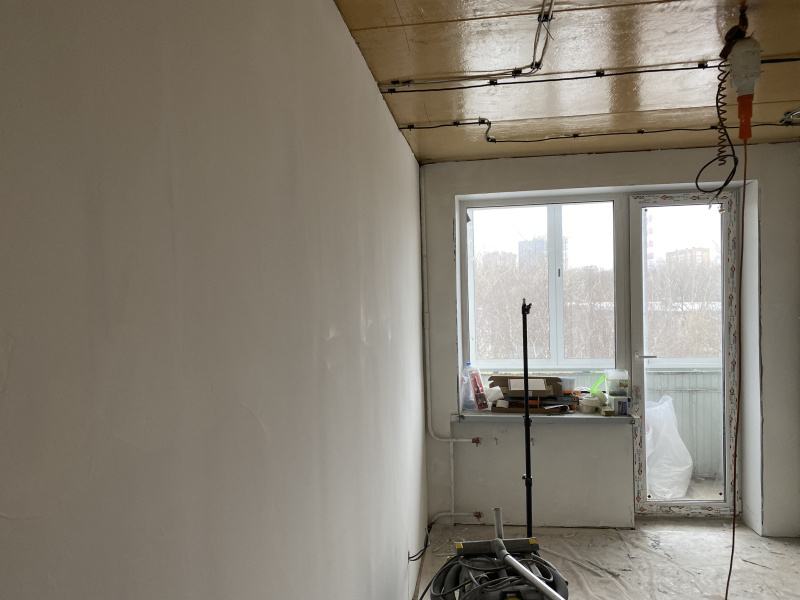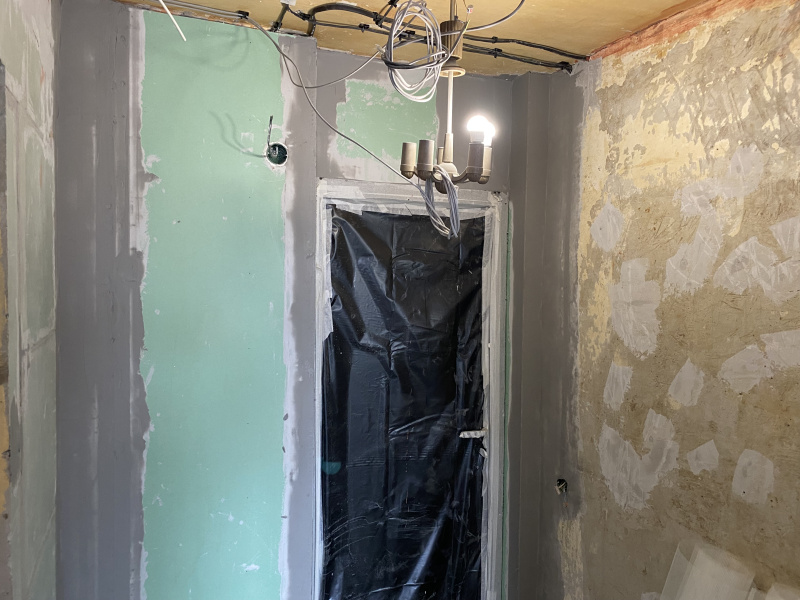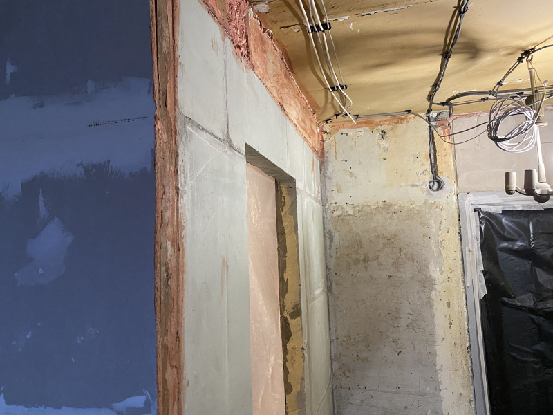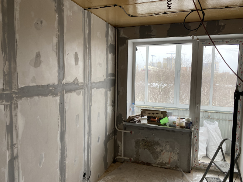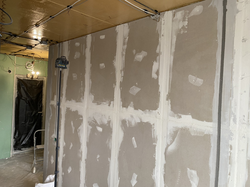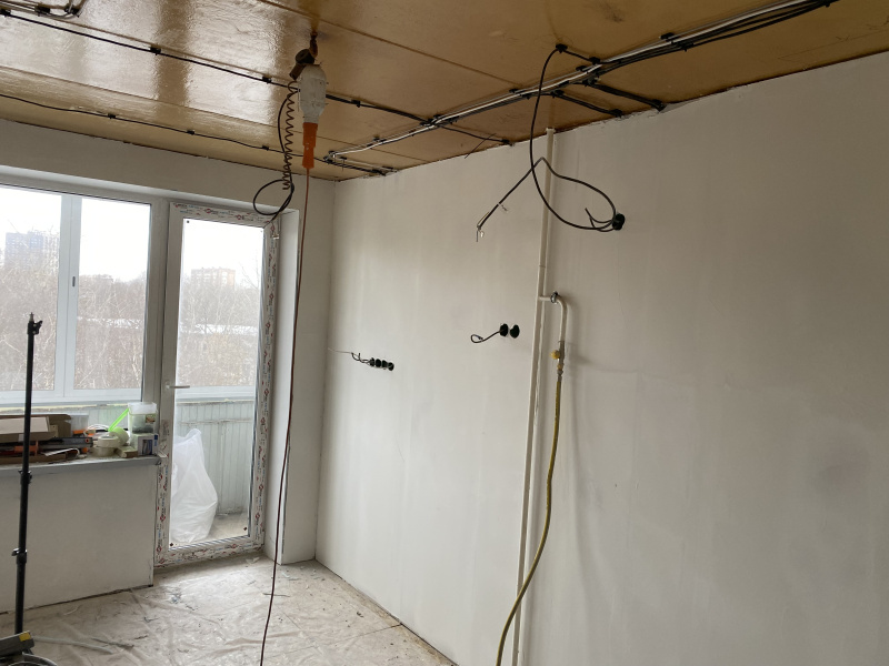 Монтаж гипсокартона на стены. Шпатлевка стен и разводка электропроводки. Оклейка обоев на стены.