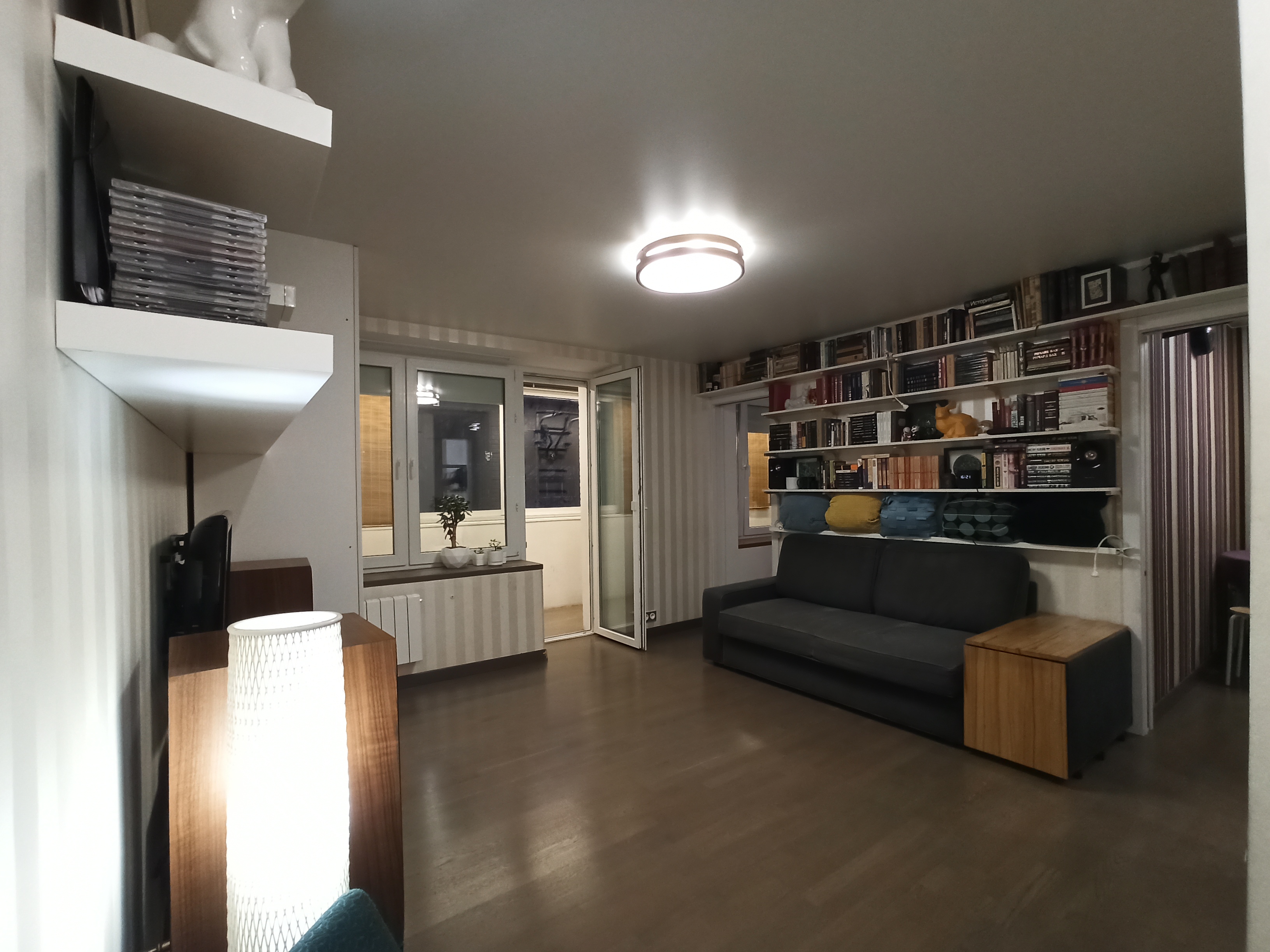 - Демонтаж полок и кронштейнов (20 шт.) на стене за диваном.