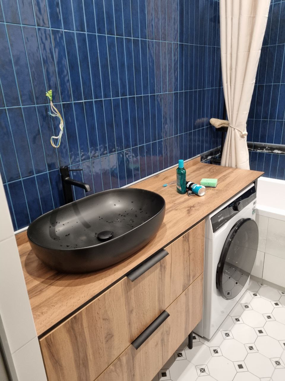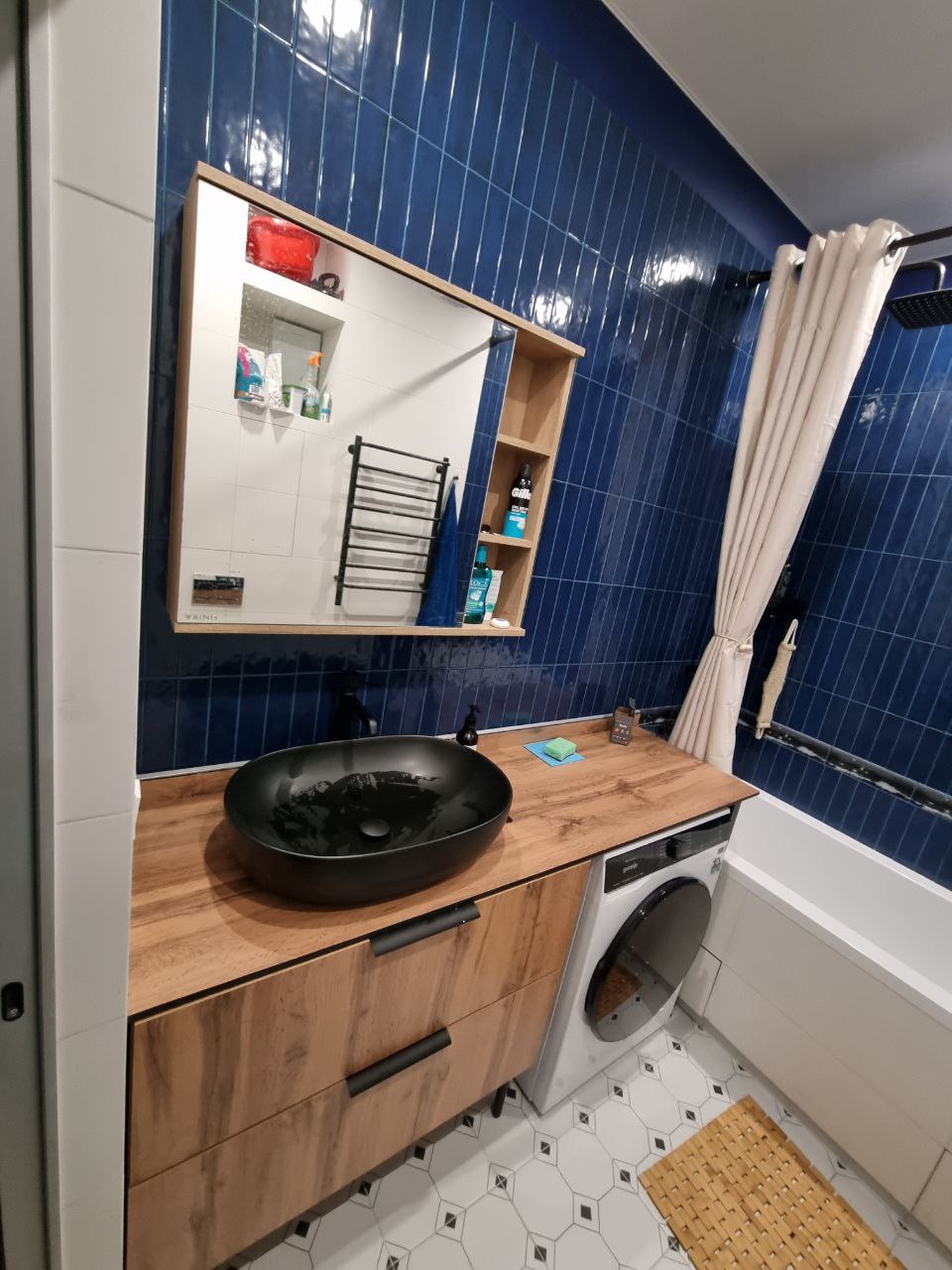 3. Перевесить верхний шкаф в ванной с заменой одной плитки, повесить там же зеркало.