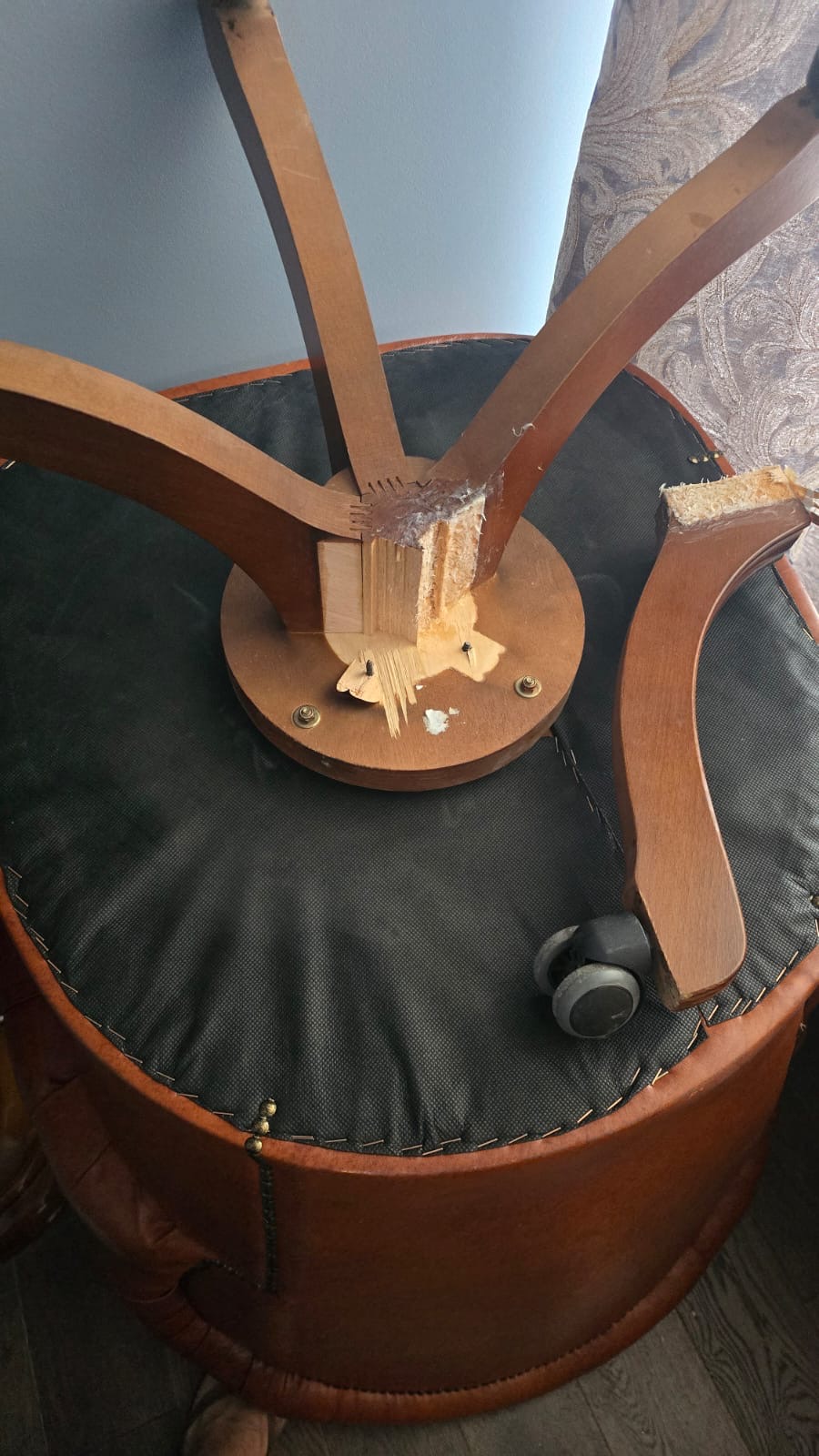 Починить деревянную крестовину от кресла .