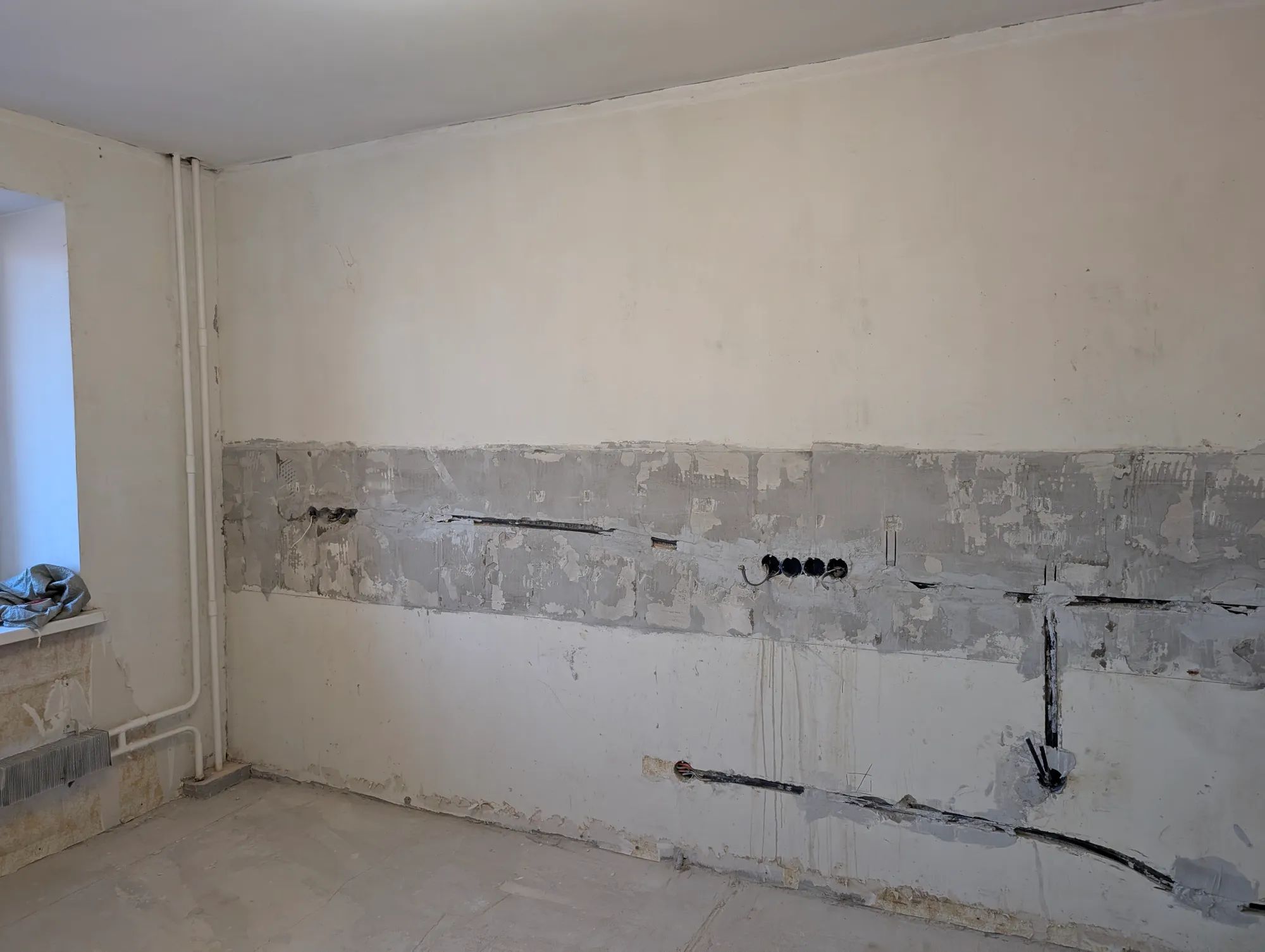 В кухне дополнительно выровнять стены под угловой гарнитур