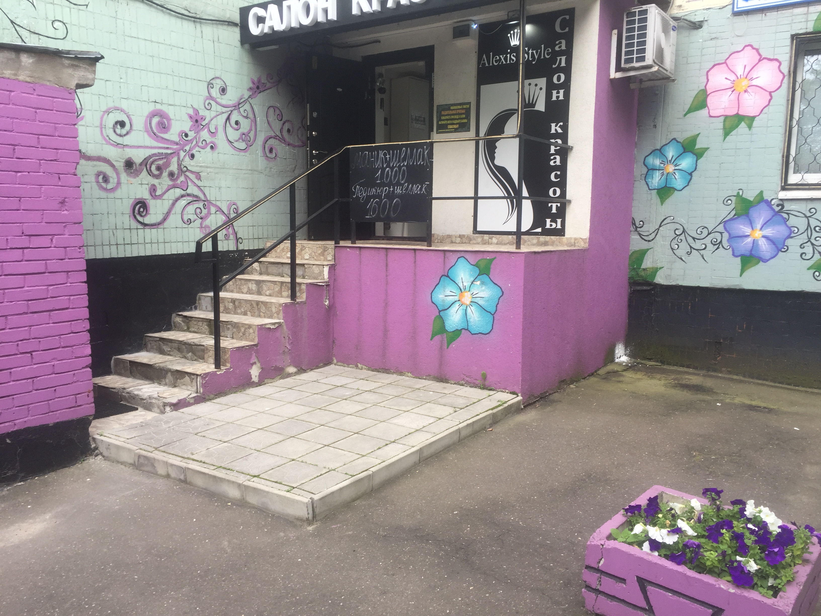 Перед салоном красоты ступени 1ОКВ требуют ремонта, демонтаж плитки старой и установка новой и штукатурка фасада плюс покраска стен.