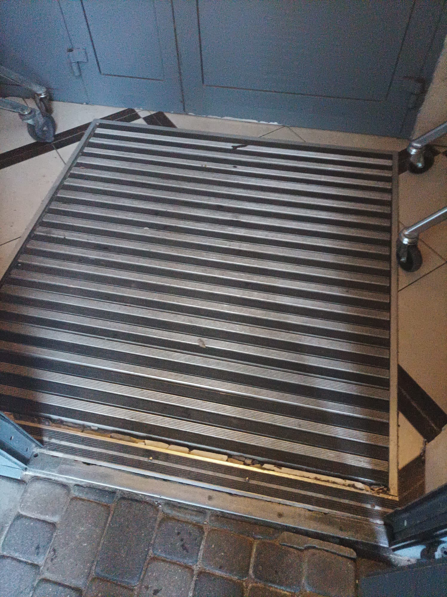 Сделать приямок (углубление) для Решетки (алюминево-резиновой,грязезащитной) глубиной 2см. Углубление прямоугольной формы между 2-мя входными дверями в подъезде МКД. Аккуратно снять плитку, которая потом может пригодится. Углубление-приямок залить бетоном. Снять размеры точные, по которым будет производится решетка грязезащитная. Фото представлены с другого подъезда. Предложите свою цену- обсудим