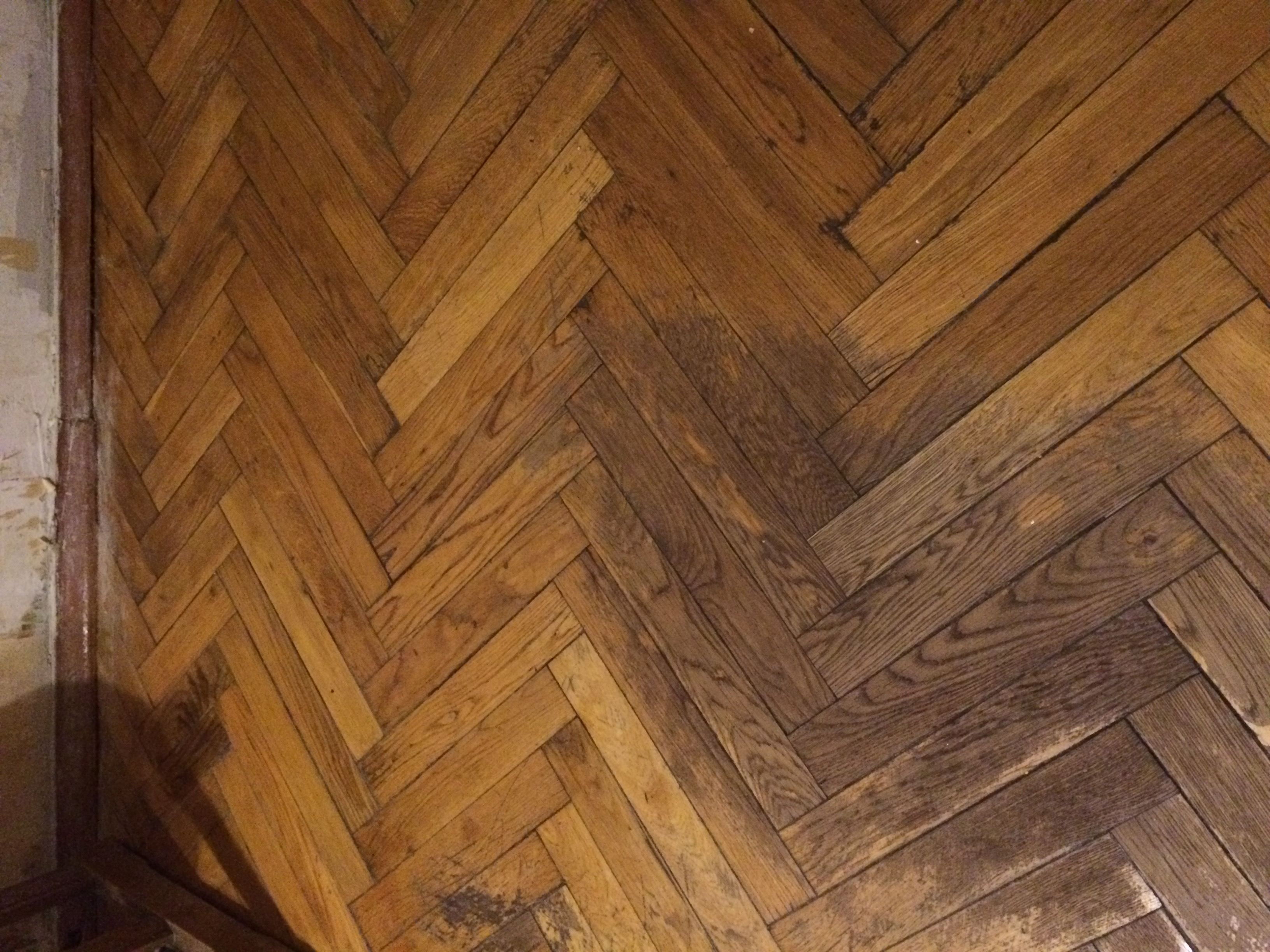 пол: снятие старого лака, если необходимо ремонт паркета, покрытие лаком; замена старого плинтуса на новый
