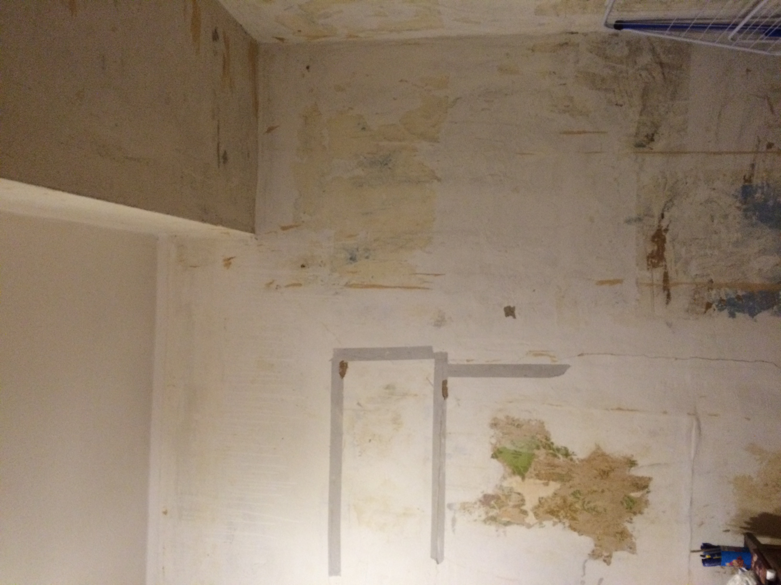 стены: демонтаж части стены(бывшего дверного проема) из оргалита и сделать новую из гипсокартона с мин ватой, заделка всех швов и подготовка стен под обои