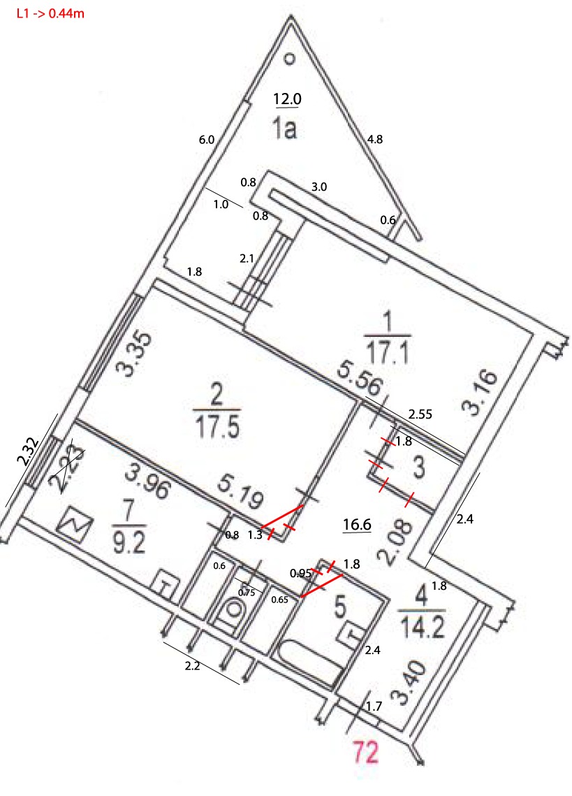 - Кладка перегородок (новые скошенные углы у ванной и у комнаты)
