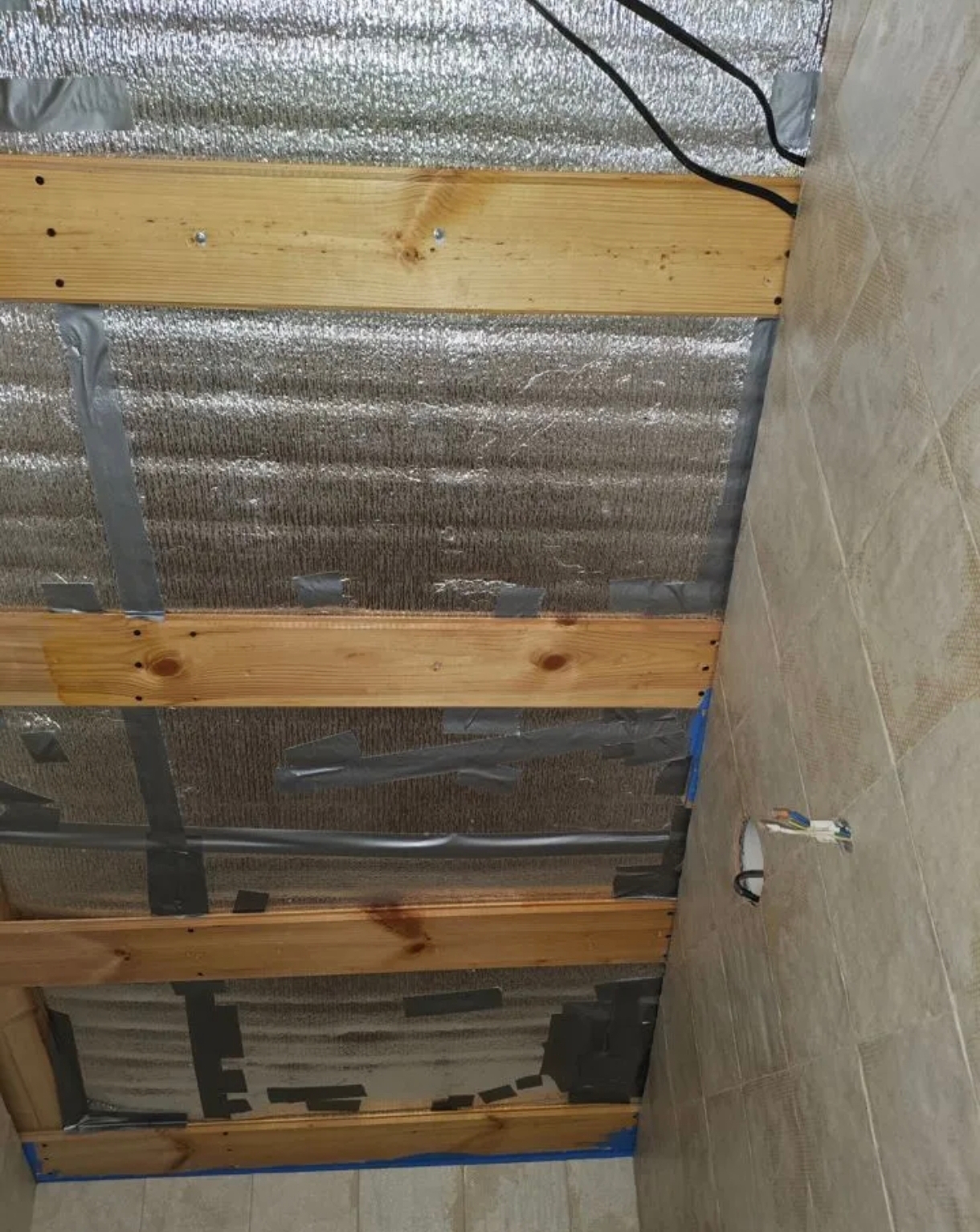 Укладка на потолке пластиковых панелей, потолок 2,30*1.10