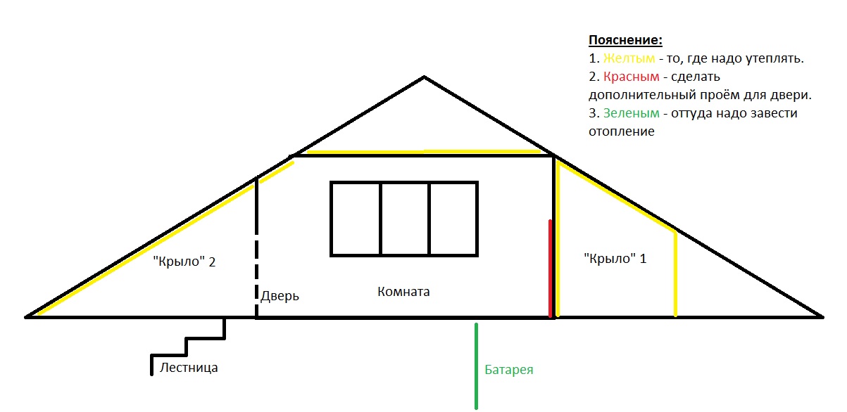 1. Утеплить второй этаж (причем комнату по всем стенам кроме уличной - снаружи). Также отделать/утеплить "крылья" - т.е. пространства между комнатой и крышей с двух сторон