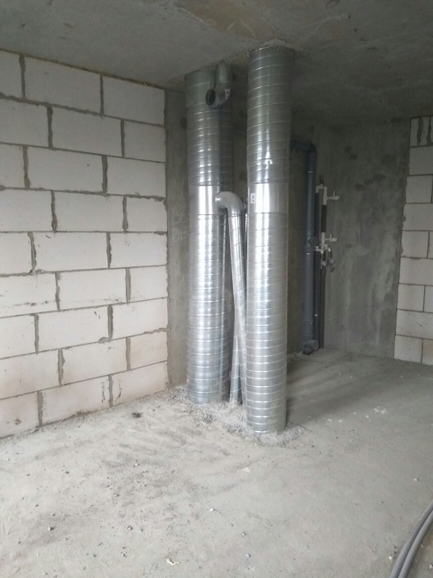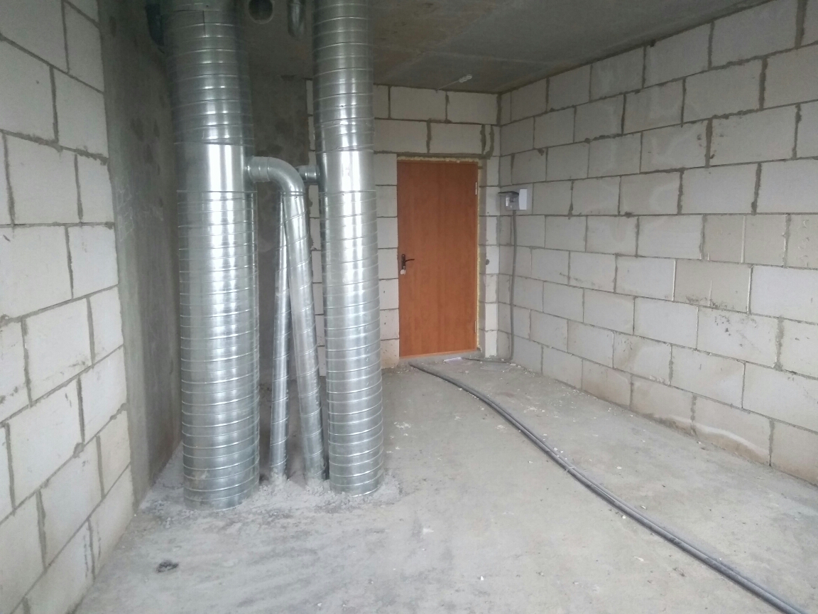 Это стены в санузле, вентиляционной перегородки, также одна стена граничит с кухней. Стена кухни из полнотелого пазогребня, остальные стены из пустотелого. Из дополнительных работ необходимо пропилить дверной проем 70 см и вывести вентиляционную трубу в отверстие в санузле и на кухне.